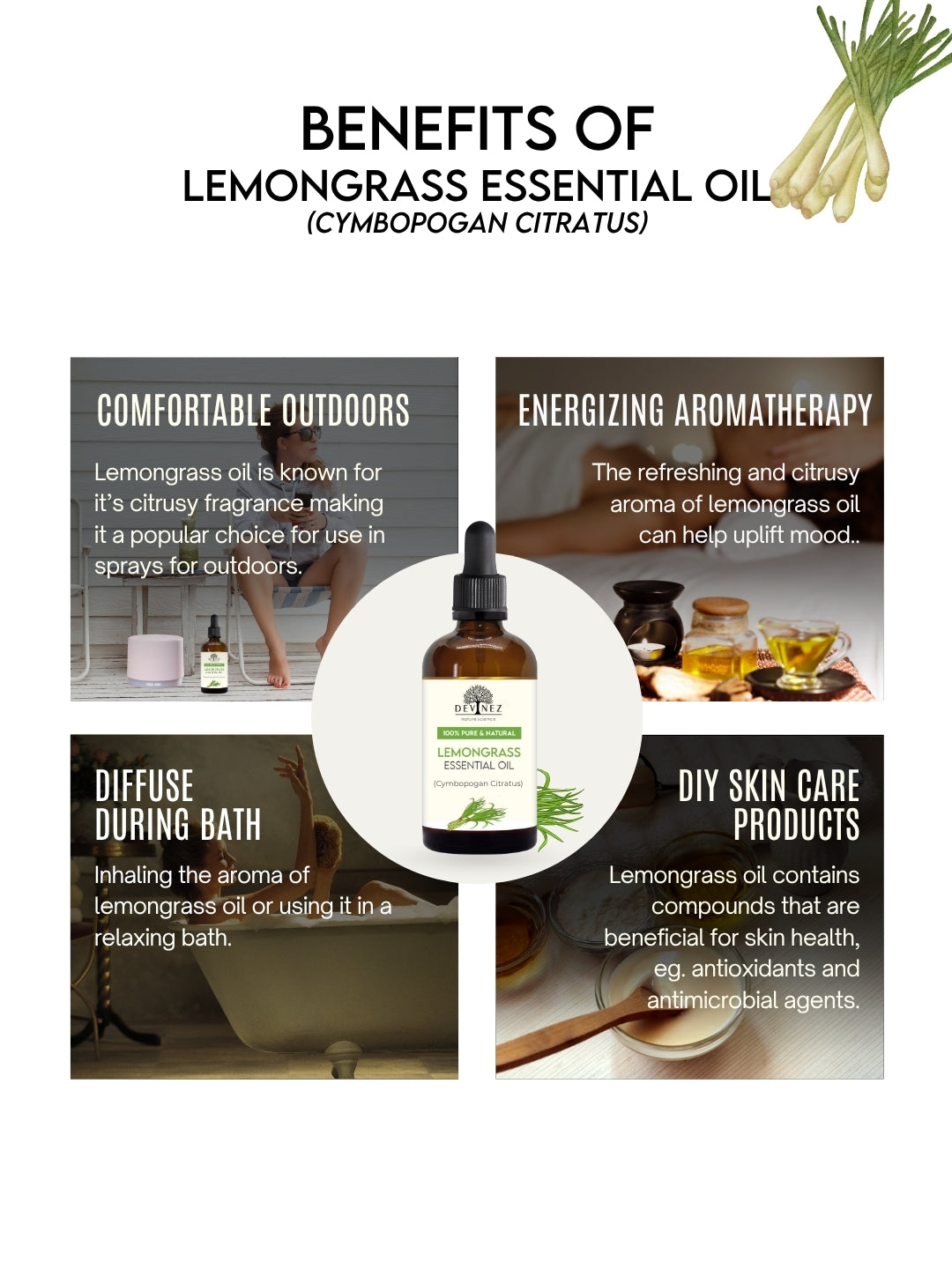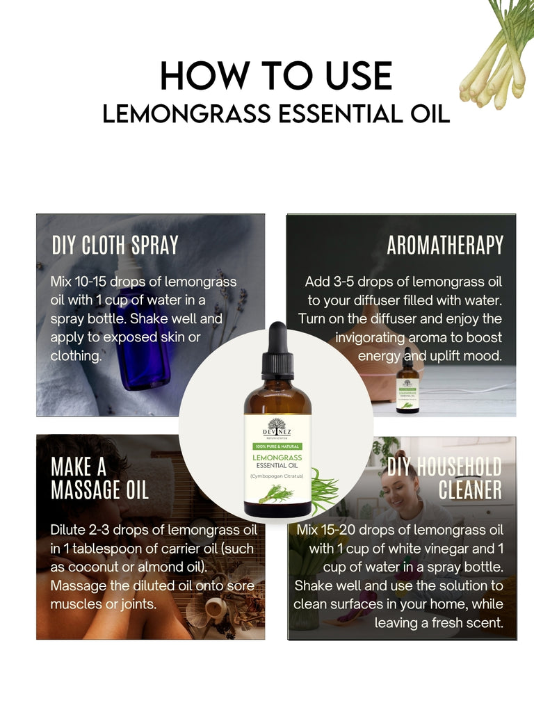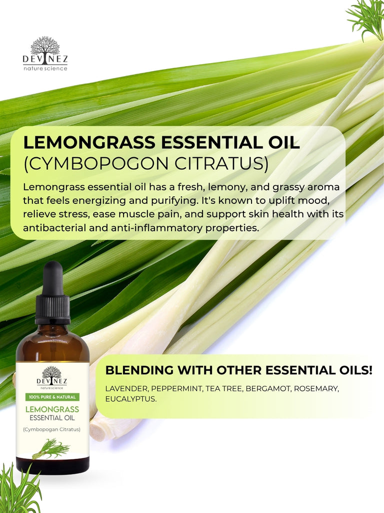 ✨ Glowing & Clear Skin – Lemongrass oil has antibacterial and astringent properties that help combat acne, control excess oil, and promote a healthy, radiant complexion.