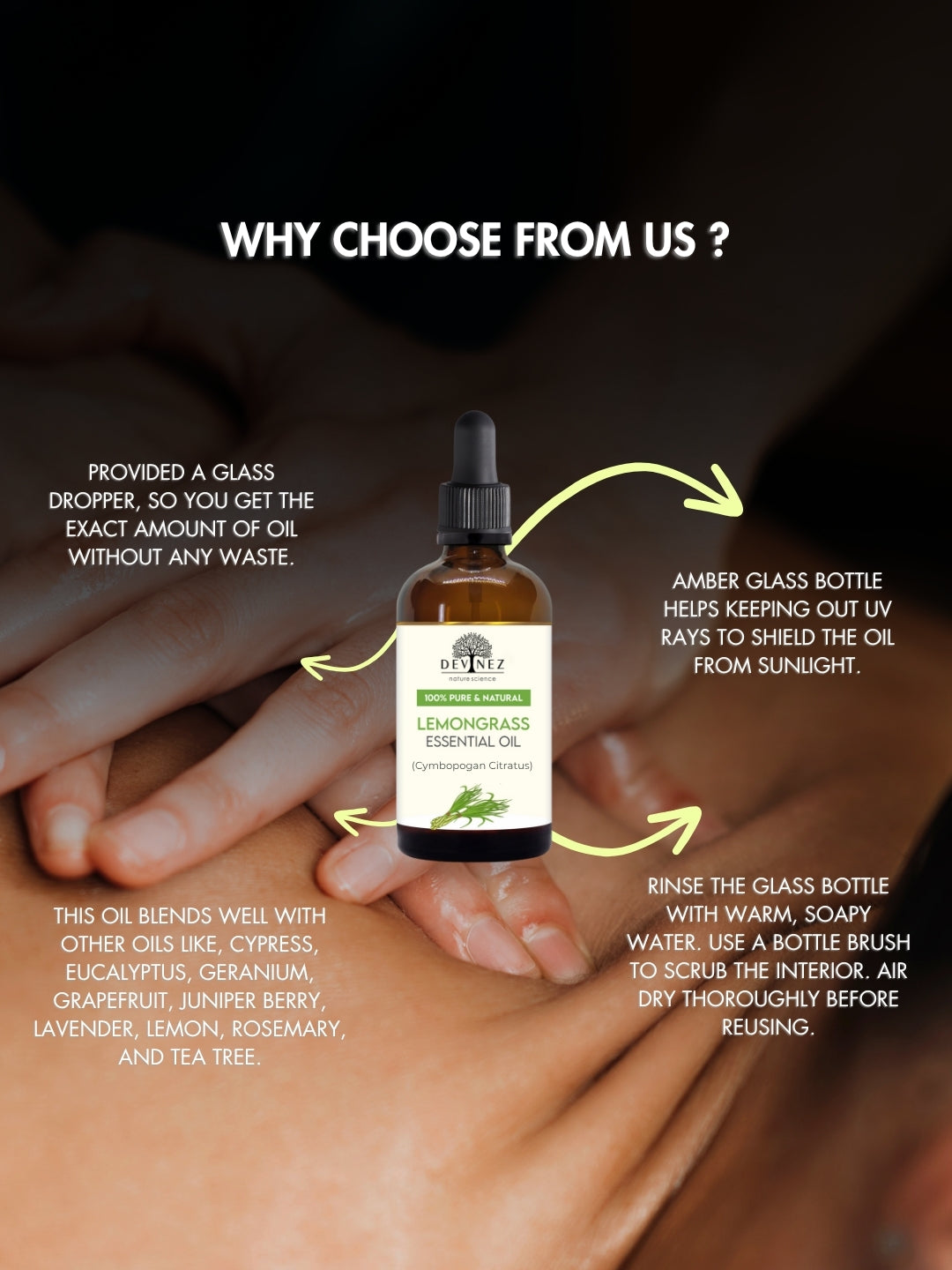 ✔ Therapeutic-Grade Quality – Sourced from high-quality lemongrass and steam-distilled for maximum potency.