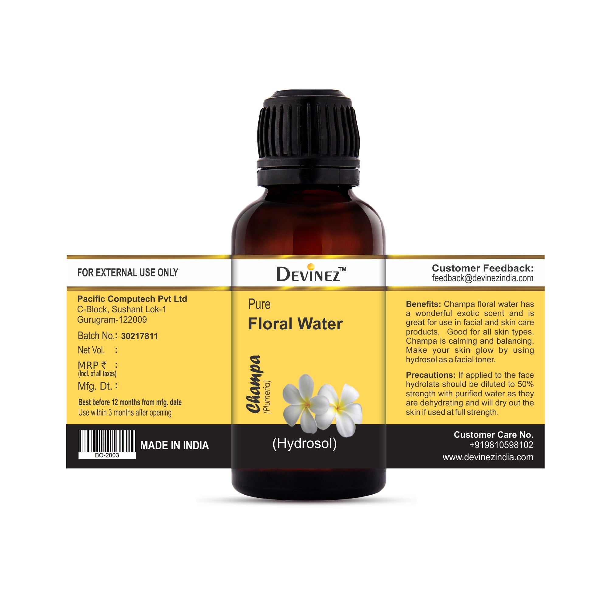 Devinez Champa Floral Water/ Hydrosol, 100% Pure, Natural & Undiluted